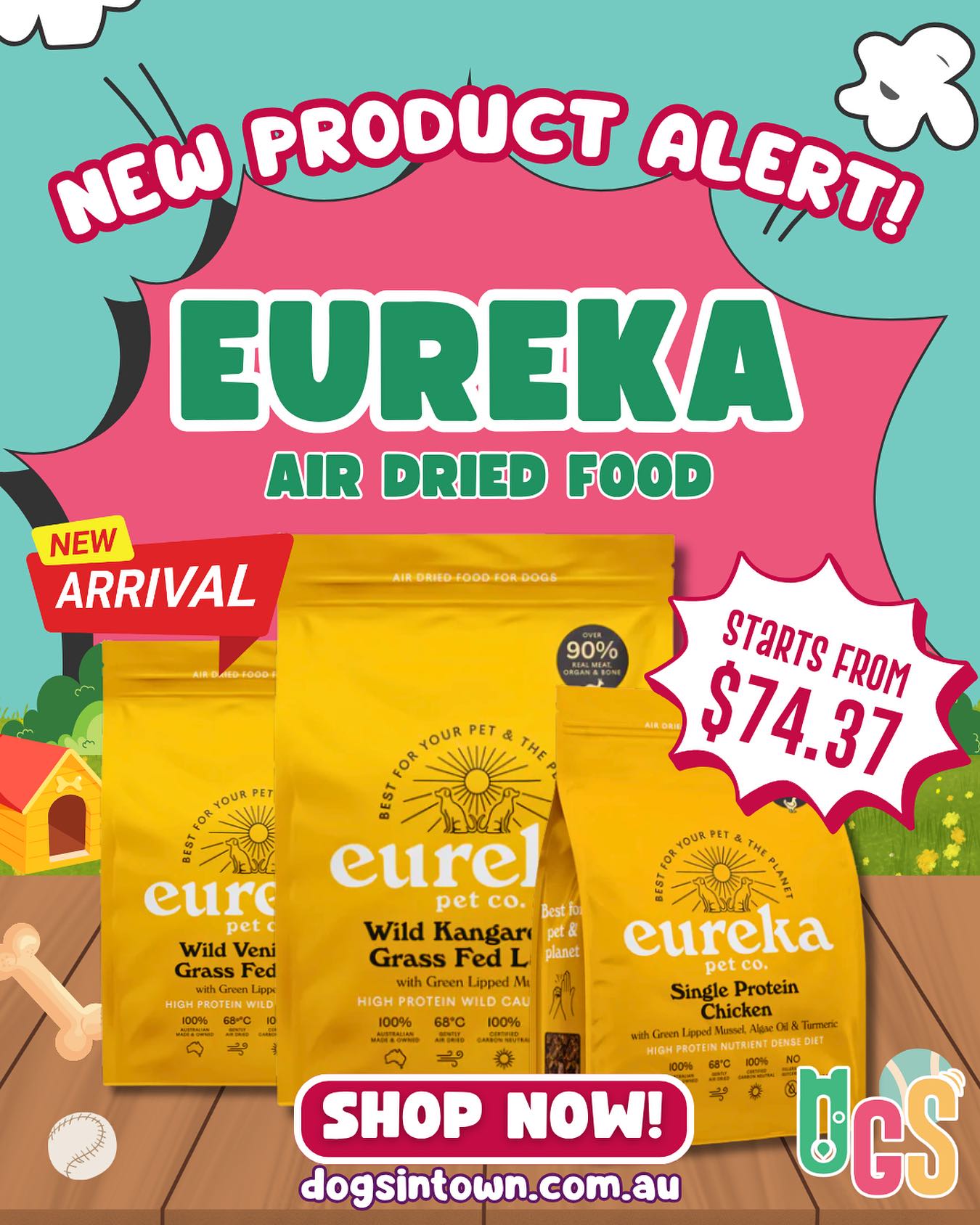 Get yours now!Your pup’s next favorite meal is here! Try the new Eureka Air Dried Food, packed with over 90% real meat and wholesome ingredients! Now available at Dogs in Town! 🐶