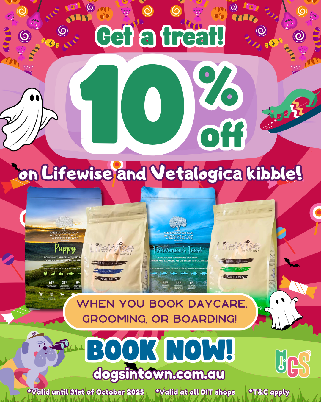 Book here🐾Get 10% OFF on Lifewise and Vetalogica Kibbles when you book daycare, grooming, or boarding! 🛁✨