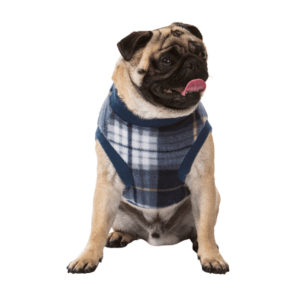 These super soft microfleece dog pyjamas in blue tartan are the best dog clothes to keep your pooch snugly and warm.
