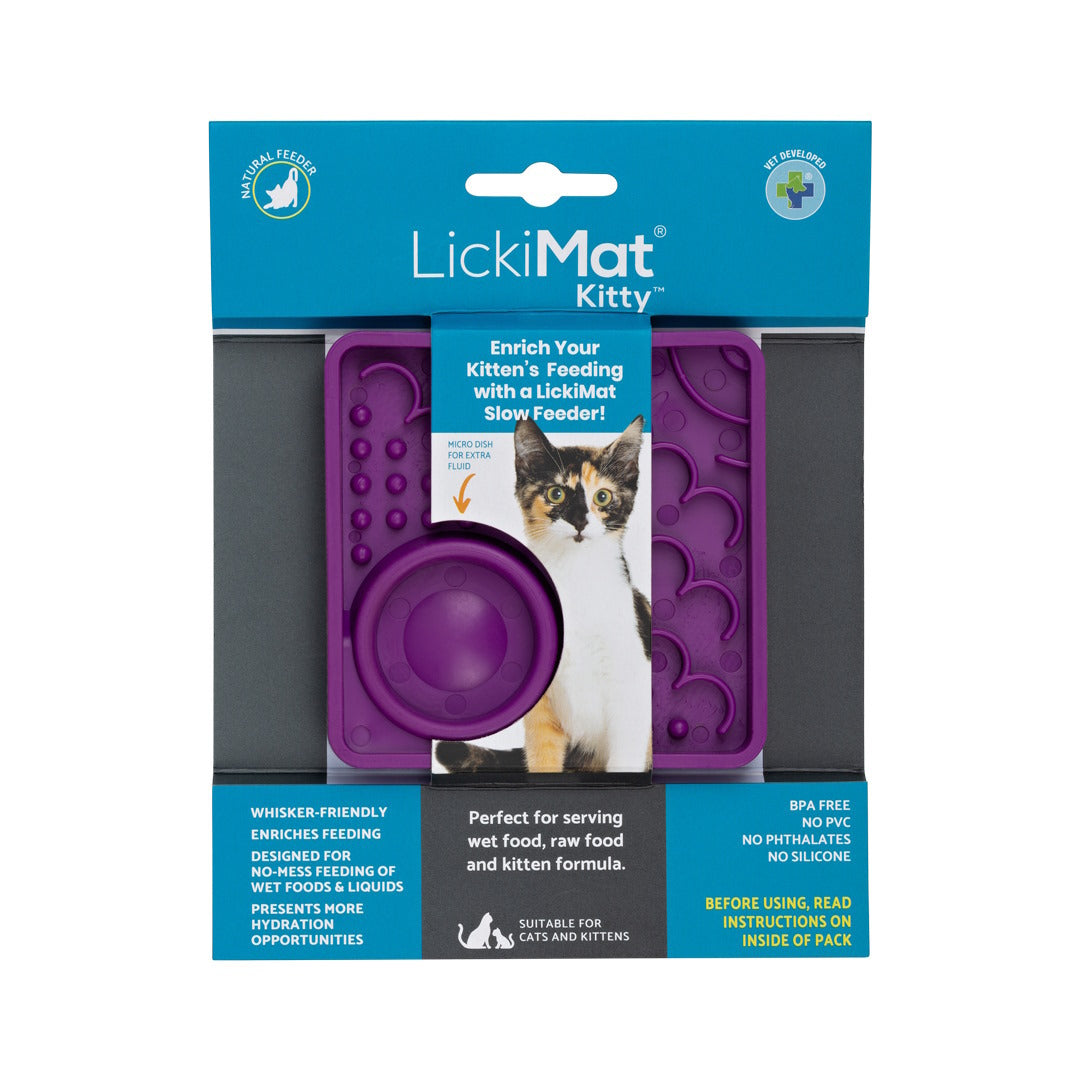 MIMICS CAT'S PREDATORY FEEDING – LickiMat Catster and Kitty enrich feeding time for cats by allowing greater activity, like they would experience in the wild. LickiMat Catster (for all Cats) and Kitty (for Kittens and smaller Cats) stop "whisker stress" and allow your cat to feed in a crouching position with a full view of their surrounds, reducing stress and anxiety. The different sections are designed to promote licking action to extract food and slow down eating and make meals or treats last a long time.