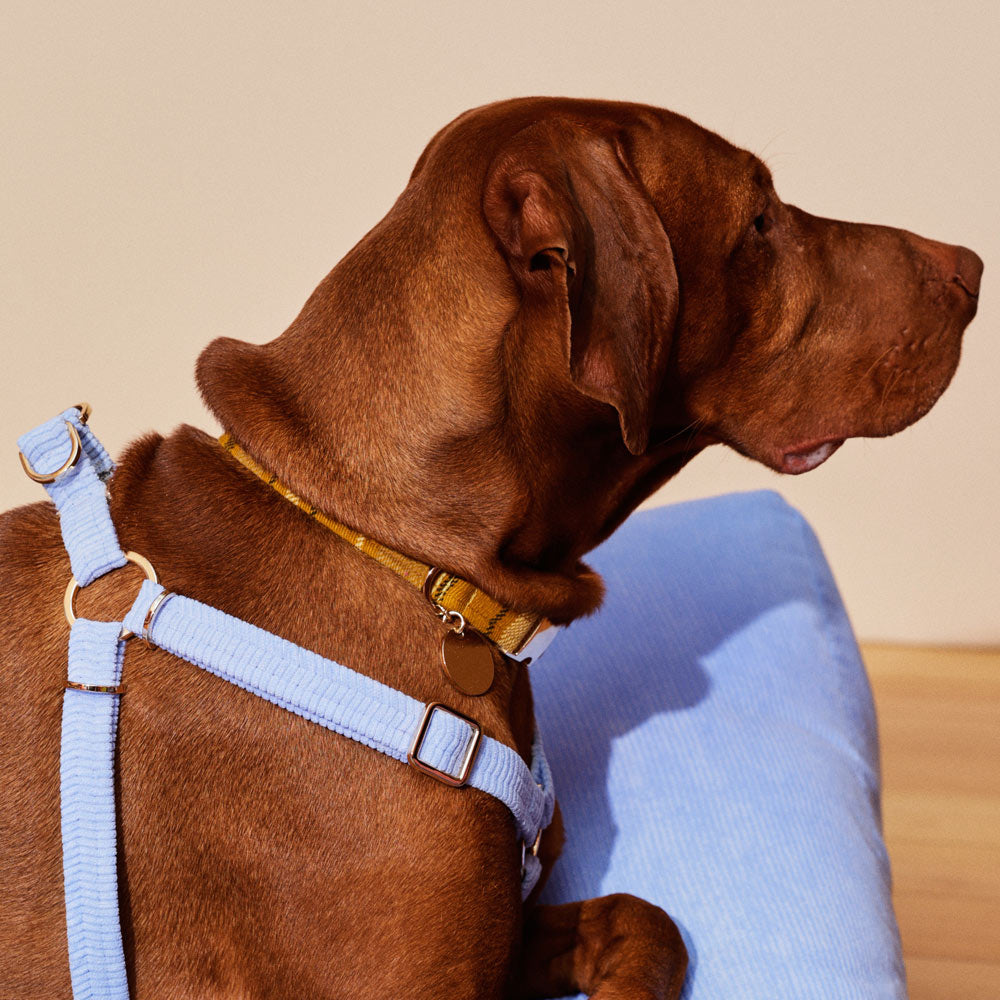 The Colonel Mustard collar is a cheeky nod to the seventies. Features a retro printed 100% cotton micro cord and finished with gold metal hardware and our iconic Nice Digs dog charm.