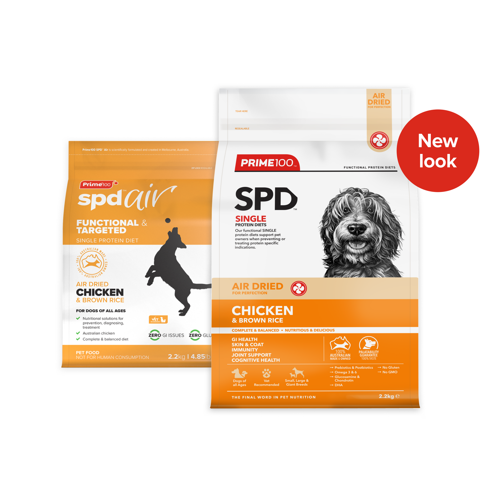 Prime 100 SPD Air Dried Chicken & Brown Rice is a vet approved, single-protein diet made from Australian chicken and brown rice. This dog food is designed by science with functional ingredients to form a complete and balanced diet for adult dogs.
