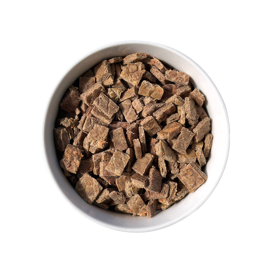 Chicken is a species appropriate protein containing glucosamine, calcium and essential amino acids. Brown rice contains natural fibres and antioxidants that support the digestive and cardiovascular system. Naturally occurring manganese from brown rice helps synthesize fat and can assist nervous and reproductive systems. Natural prebiotics and probiotics (Bacillus Subtilis) deliver functional gastro-intestinal support and encourages healthy microbiome in the gut. Air Dried to Perfection.