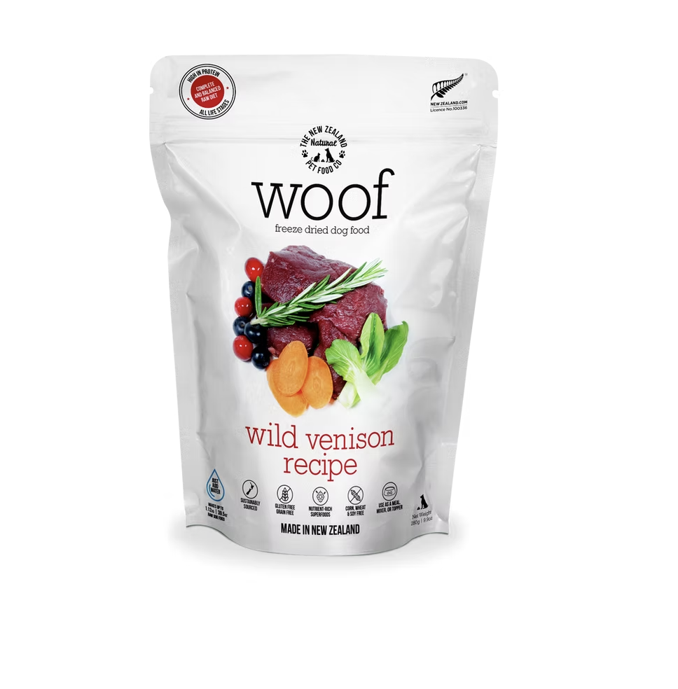 WOOF is made using only the highest quality ingredients aimed at nourishing your pet's health. We combine the nutrition and taste of fresh, raw food and put it through a gentle freeze drying process which protects all the natural enzymes and nutrients, so none of the wholesome goodness is cooked out.